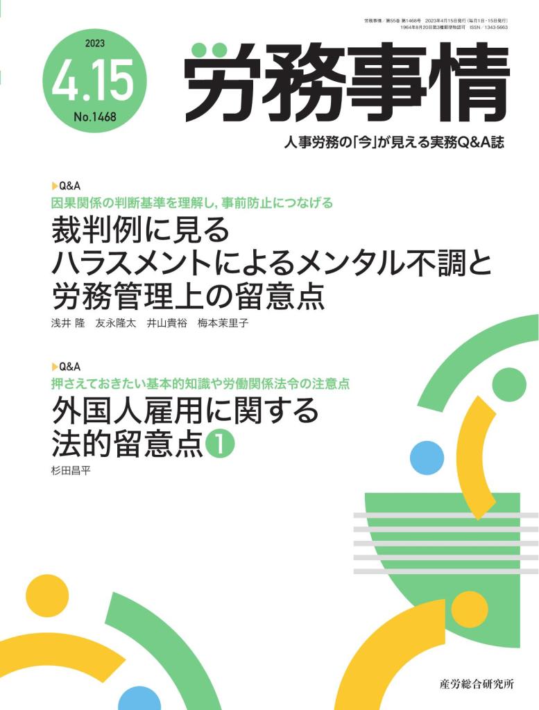 【多読味読<93>:杉田昌平「外国人雇用に関する法的留意点①」人事労務の「今」が見える実務Q&A誌『労務事情』産労総合研究所2023年4月発行】
