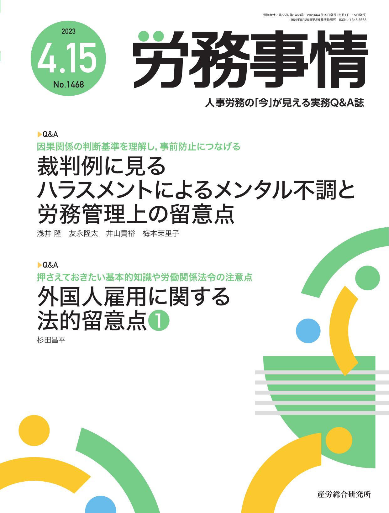 【多読味読<93>:杉田昌平「外国人雇用に関する法的留意点①」人事労務の「今」が見える実務Q&A誌『労務事情』産労総合研究所2023年4月発行】