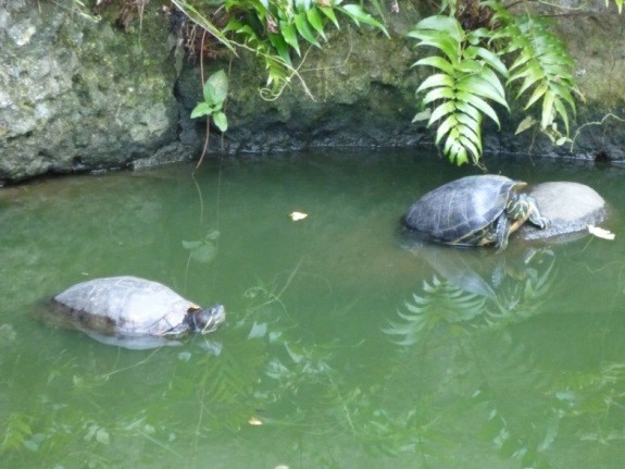 亀の親子の安心の居場所(飯田橋駅前のカフェにて、撮影:川村千鶴子2016)
