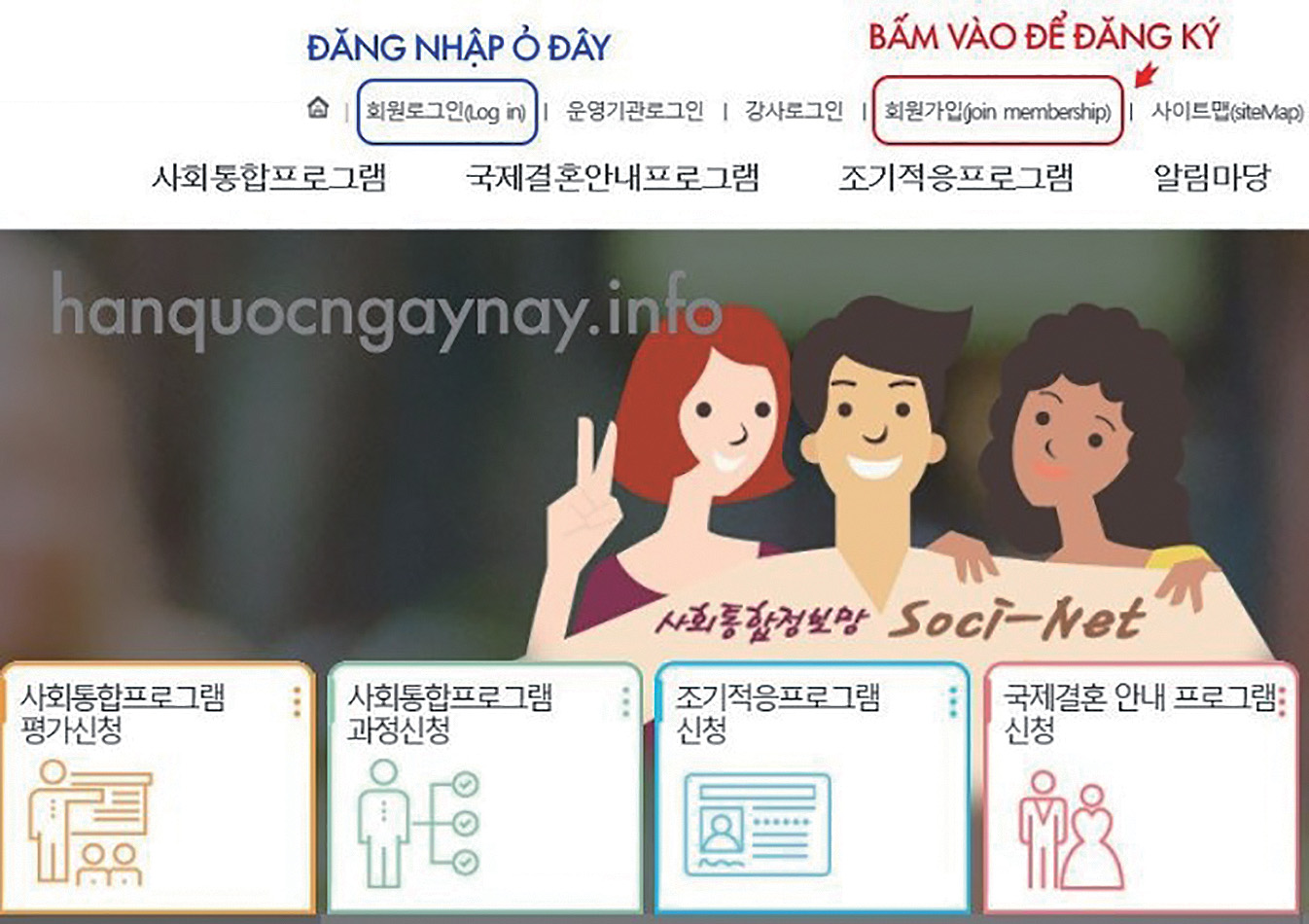 結婚移民者のための統合プログラムは、前述の早期適応プログラム、国際結婚案内プログラムのほか、女性家族部が実施するプログラムも多数存在する。これは、全国217の地域に存在する多文化支援センターを介して行われており、地域社会の多文化家族を対象に家族相談や教育、韓国語教育などの訪問教育サービス、通訳・翻訳、子どもの教育支援などのサービスが提供されている。韓国における移住民社会統合政策が日本の移住民社会統合政策を作っていく過程で参考になればと思う。